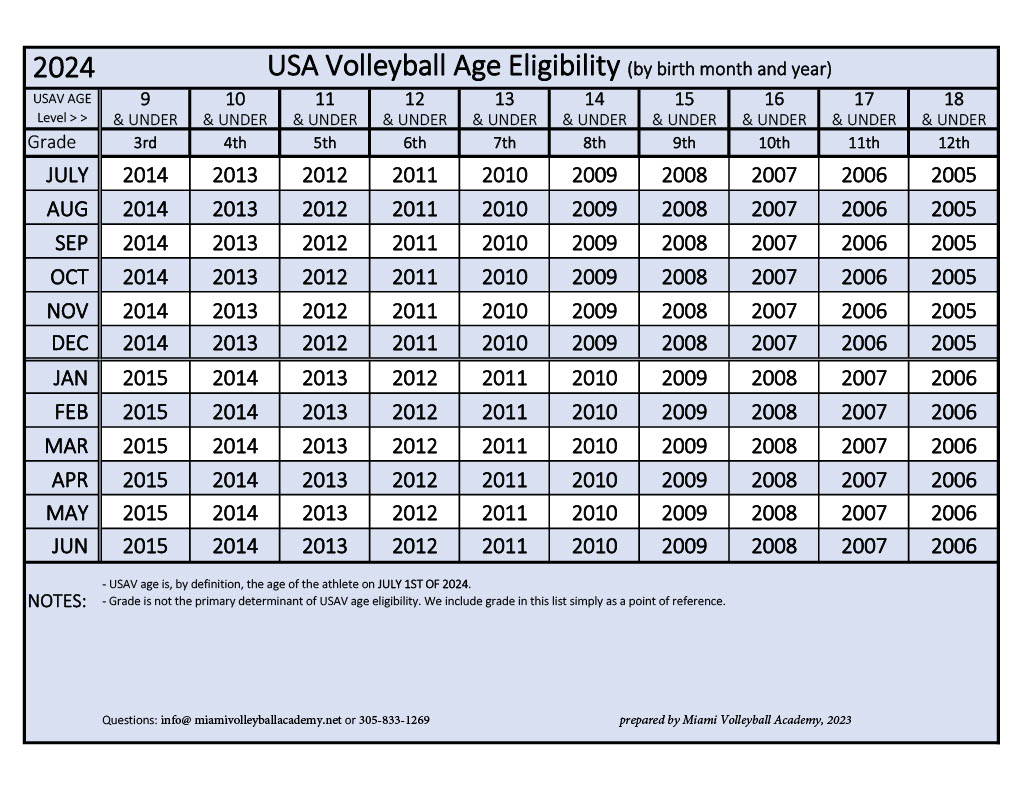 USAV AGE DEFINITIONS